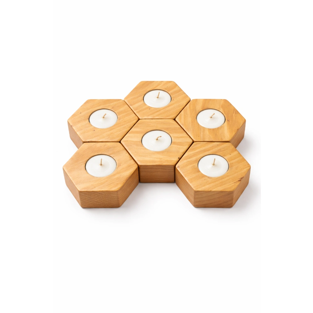 Bring warmth and natural elegance to your space with this beautifully crafted hexagon wooden tealight candle holder set. Made from high-quality beech wood, each piece features a smooth finish and a modern geometric design inspired by honeycomb patterns.